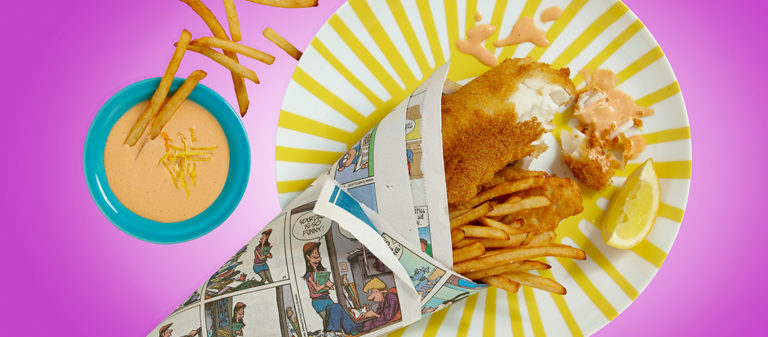 - Portion the spicy mayonnaise into four ramekins and serve with the CHA!-flavored battered fish.